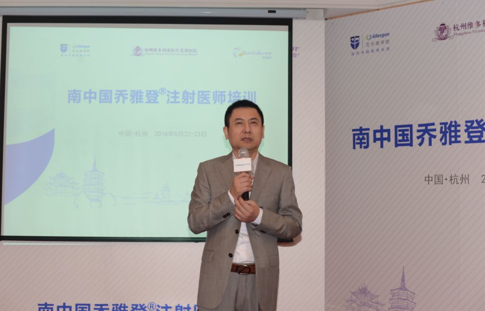 杭州維多利亞醫(yī)療美容醫(yī)院院長程健歡迎詞,他贊賞美國艾爾建公司作為全球醫(yī)療美容領域的領導者,致力于中國醫(yī)療美容市場的培育和開發(fā),培訓注射醫(yī)師,樹立中國醫(yī)美市場優(yōu)良風氣的行為。