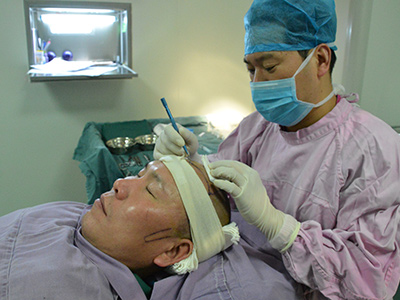 在充分了解植發(fā)方案并進(jìn)行完植發(fā)術(shù)前檢測(cè)之后,李奇龍先生走進(jìn)了毛發(fā)種植中心的手術(shù)室,一旁的醫(yī)生表示不用擔(dān)心手術(shù)的疼痛感,完全可以享受午休式植發(fā)體驗(yàn),換一句話說就是睡一覺醒手術(shù)就差不多做好了。李奇龍先生聽到醫(yī)生的話之后笑言自己完全不擔(dān)心疼痛,這些年拍戲沒少受傷,再說自己是練武出身,所以完全不怕手術(shù)。
